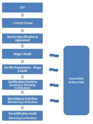 On receipt of filled in QRF, detailed Quotation (Service Specification & Agreement - SSA) is prepared and sent to client for perusal. Agreement describes various services that QMSI agrees to provide to its Clients (including audit processes & certification processes for granting, maintaining and renewing certification), Clients responsibilities, Fees, Terms and Conditions of Agreement. Additional information describing processes of expanding, reducing, suspending or withdrawing certification shall be provided upon request.